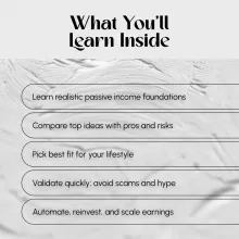 - Clarity on what passive income truly means—no hype, just workable strategies.