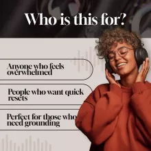 Anyone craving a gentle way to unwind between busy moments. People who want short, effective meditations for clarity, confidence, and stress relief. Perfect for those new to mindfulness or returning to a consistent practice.