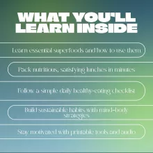 Ready to make healthy eating easier every day? Download Fuel Your Life: The Ultimate Healthy Eating Starter Bundle now, open the Everyday Superfoods Guide, plan smarter lunches with the Guide to Nutritious Diet Lunches, track wins with the Daily Healthy Food Power Checklist, and press play on the Body and Mind: Lasting Change Audio Course. Your simplest path to better meals—and better energy—starts today. This is a digital product; no physical item will be shipped.