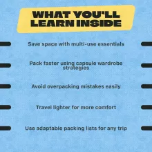 Love this digital guide! It really helped me pack light for my last trip. The pre-packing planning steps were super useful, especially the part about choosing a versatile color palette. No more overpacking for me! 😎