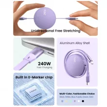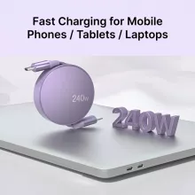 This retractable USB Type-C to Type-C cable is not just a charging solution; it’s a game-changer for anyone who needs fast, efficient, and versatile charging. The retractable design allows you to easily store the cable without worrying about tangles, making it ideal for travel, office spaces, or home use. Whether you need to charge your phone, tablet, or laptop, this cable delivers the power you need in a compact, easy-to-use package. With a powerful 240W option for larger devices and for daily use, it offers universal compatibility across all Type-C devices, including the latest iPhone 15 series. Whether you’re at home, in the office, or on the go, this cable ensures that your devices are charged quickly, so you can stay productive and connected. Plus, the adjustable length makes it ideal for different charging scenarios.