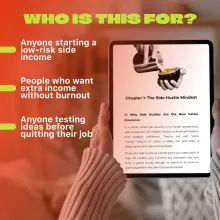 - Chapter 1: The Side Hustle Mindset — Why Side Hustles Are the New Career Insurance, The Psychology of Starting Small, Finding Your “Why”, and Case Study: From Burnout to Creative Boss.