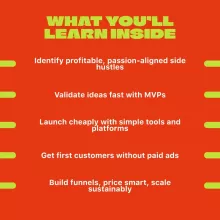 Side-hustlers, freelancers, creators, and professionals who want a repeatable system to pick the right idea, launch with confidence, and monetize without wasting time or money.
